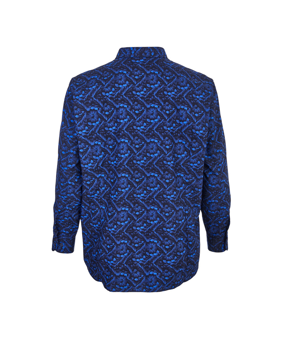 Чоловіча сорочка з весняним квітковим принтом в темно-синьому кольорі.