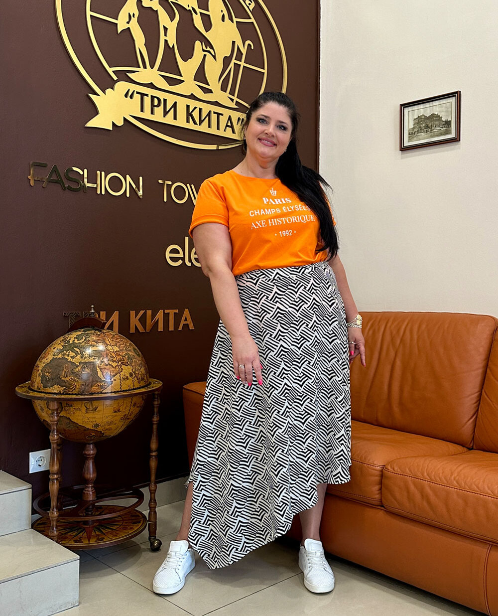 Легка спідниця вільного крою з геометричним принтом на застібці-блискавці. Не вимагає особливих поєднань.