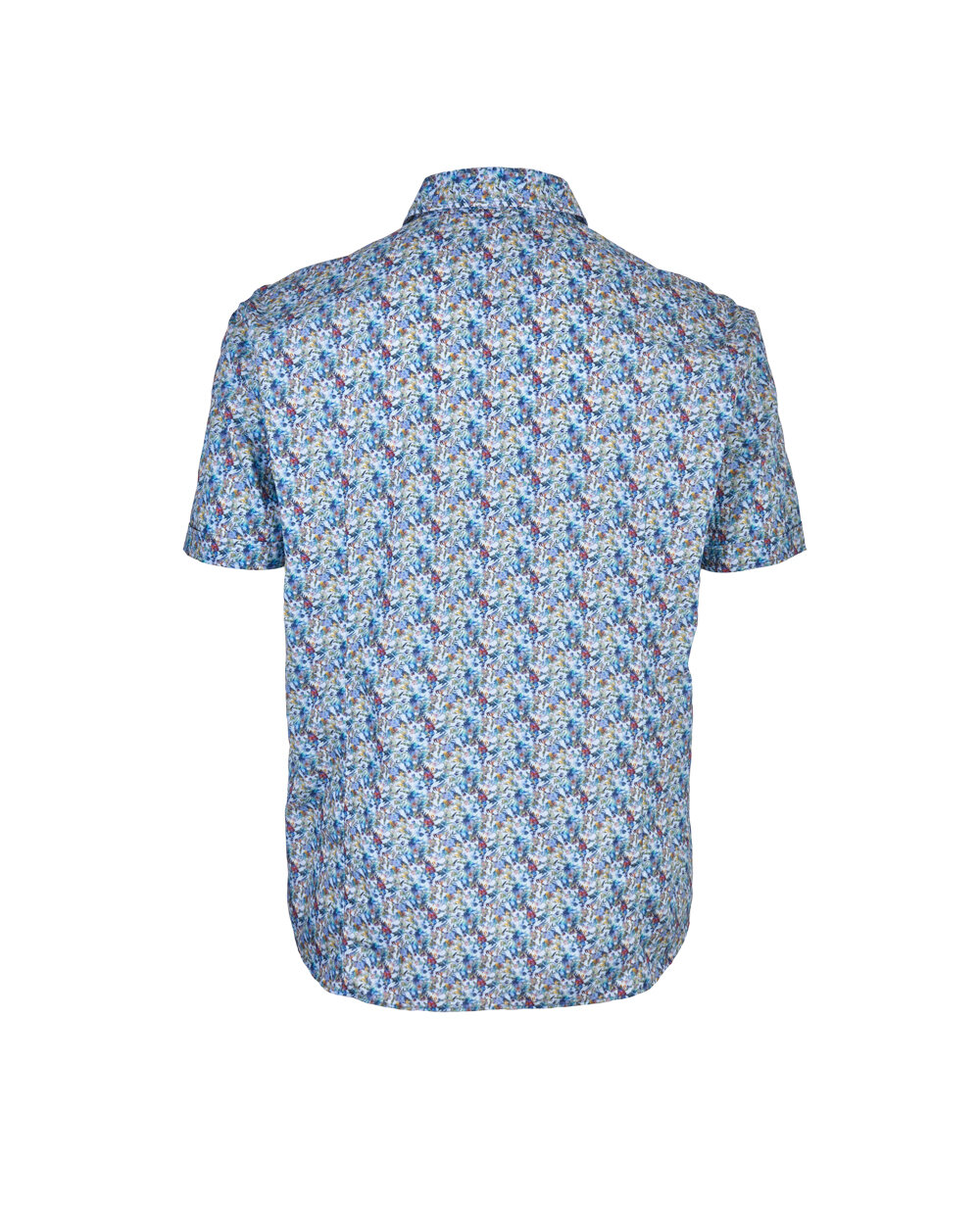 Чоловіча сорочка з коротким рукавом, з оптичним принтом в блакитних тонах.