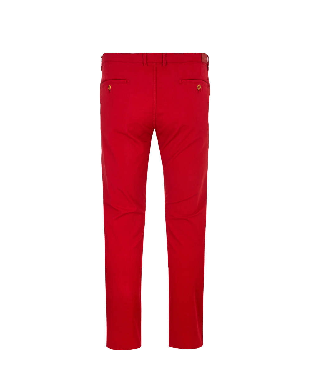 Злегка завужені слакси з середньою посадкою, виконані з однотонної бавовни. Ззаду прорізні кишені
