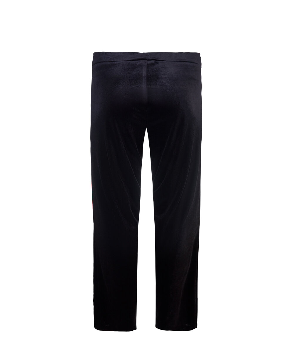 Велюрові брюки прямого крою з колекції Verpass чорного кольору. Модель без застібки з поясом на еластичній резинці. Довжина брюк в 46 розмірі 108 см.
