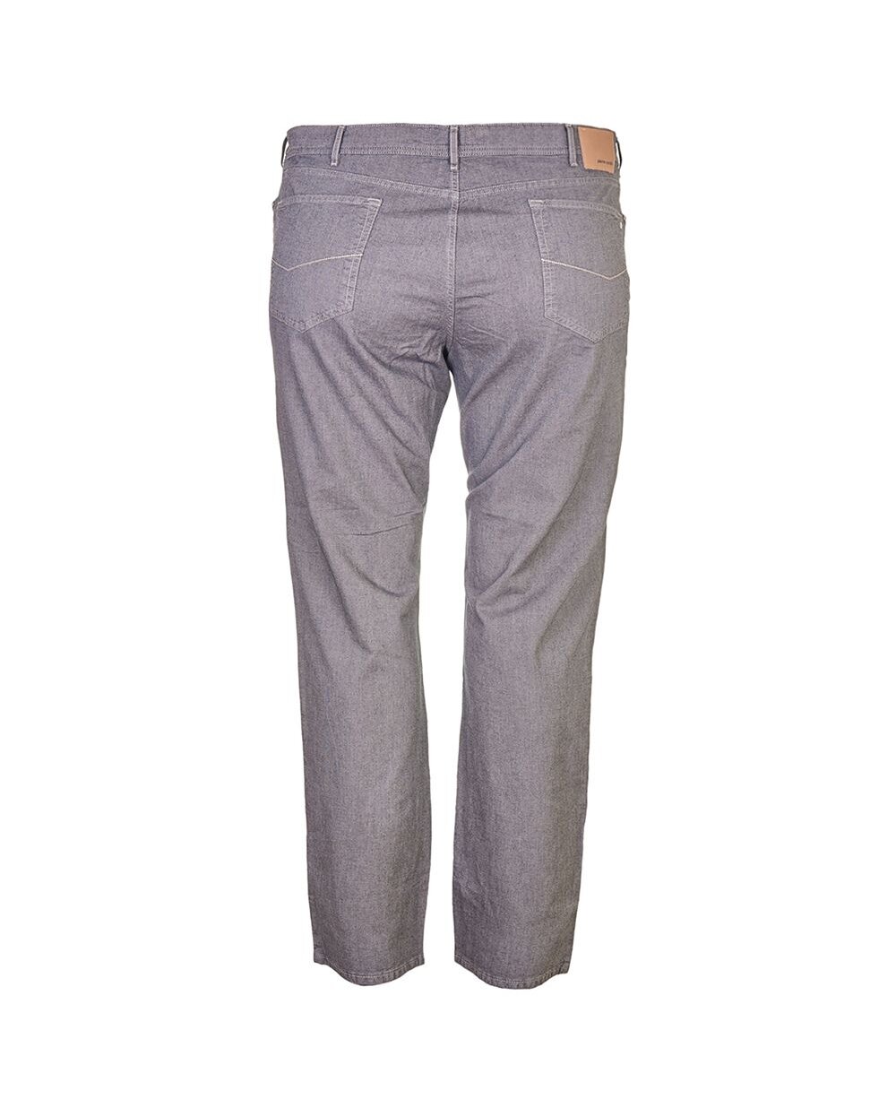 Сірі джинси з бежевою ниткою і петлею на гульфіку класичного крою.