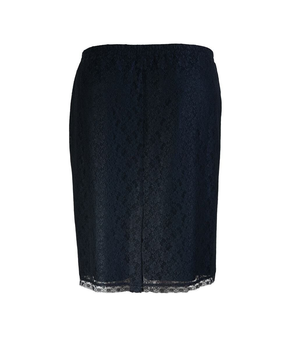 Спідниця довжини міді, пряма, з гіпюру чорного кольору, пояс на резинці. Підспідниця з еластичного матеріалу чорного кольору.