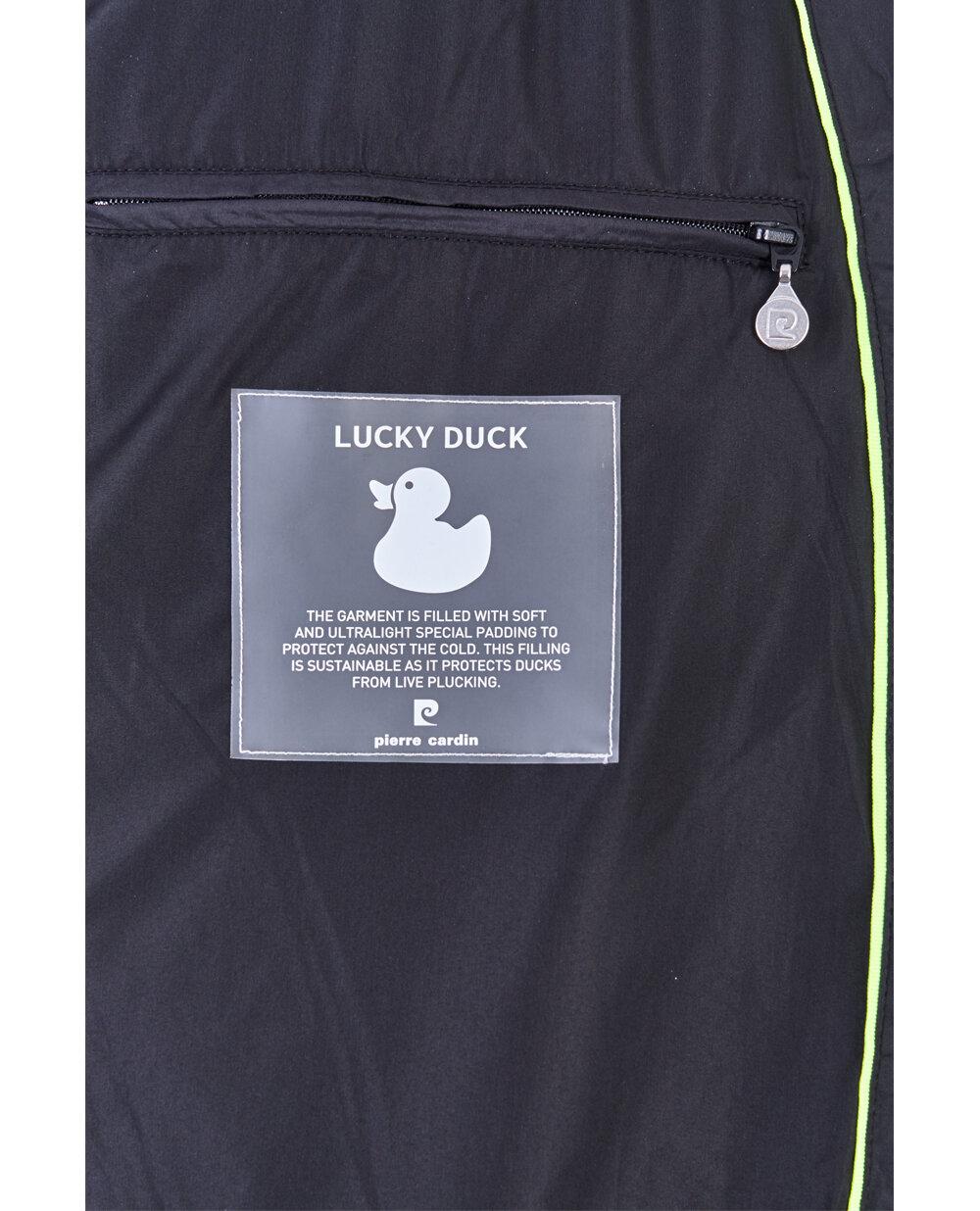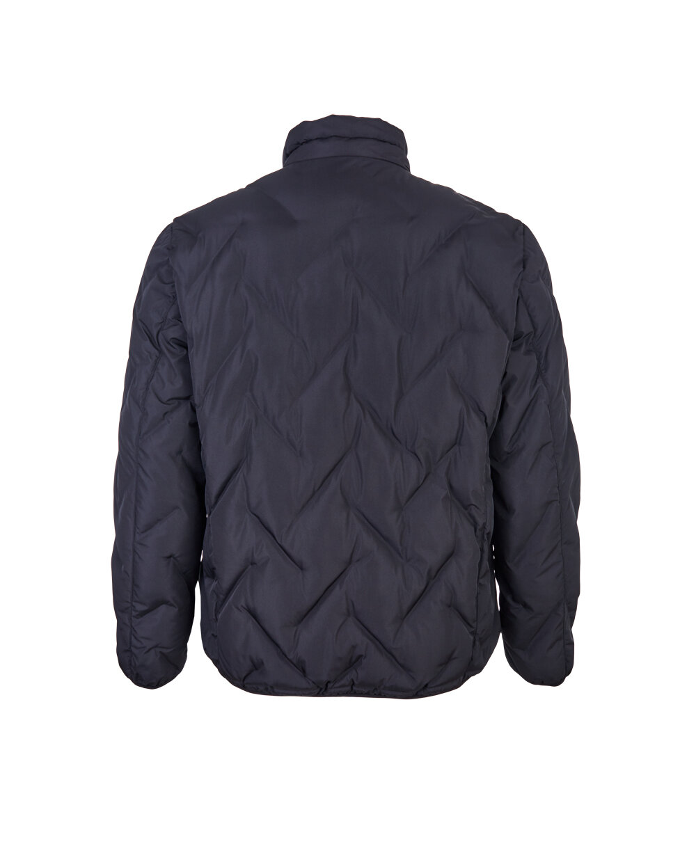 Чорна стьобана чоловіча куртка прямого крою. Застібка на блискавку, висока горловина-стійка. З боків дві прорізні кишені на блискавці. Манжет рукава і низ куртки на невеликій еластичній гумці. Наповнювач м'який і надлегкий штучний еко-матеріал