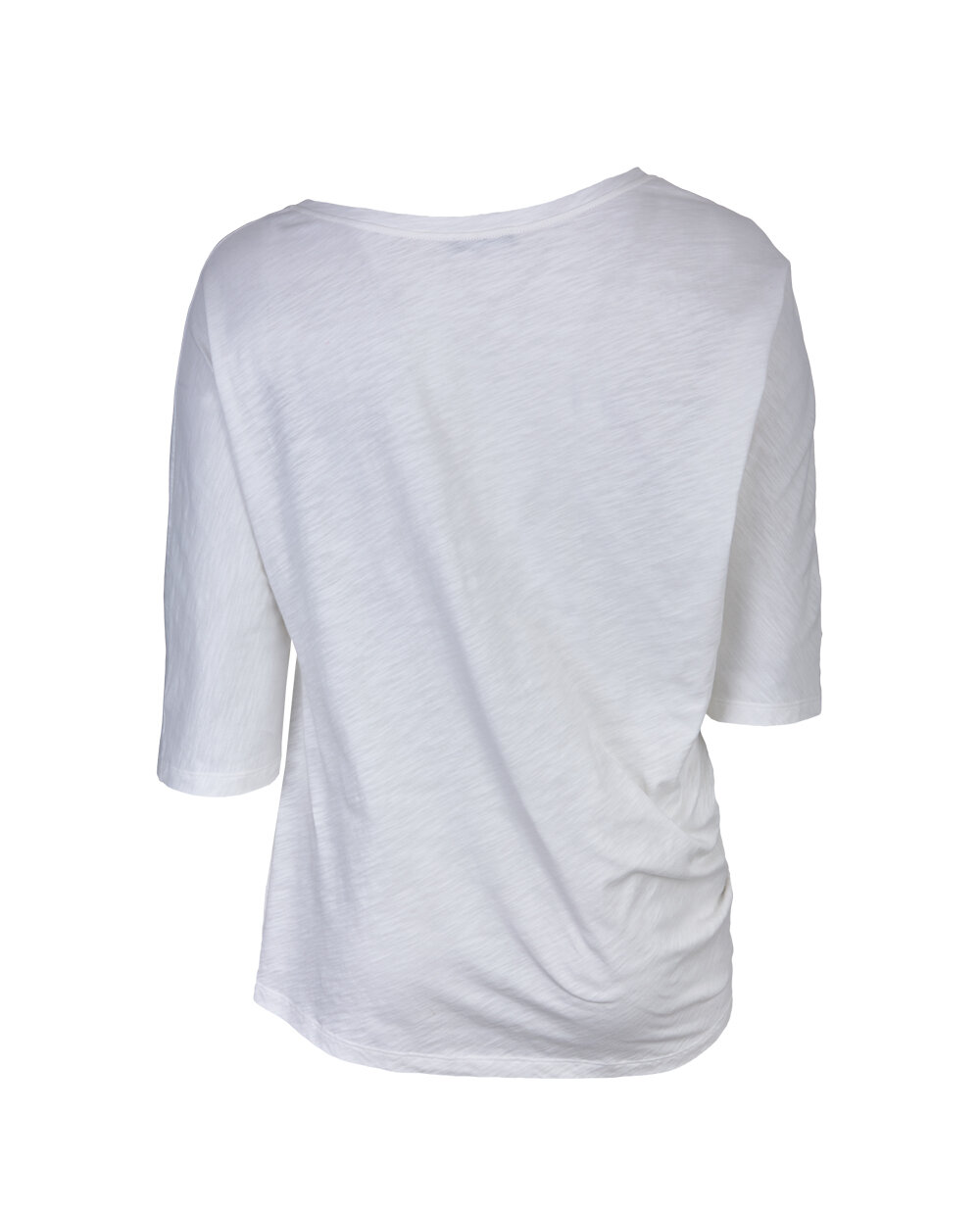 Бавовняна футболка з рукавом на одне плече і контрастним принтом. Легко поєднується з джинсами і брюками.