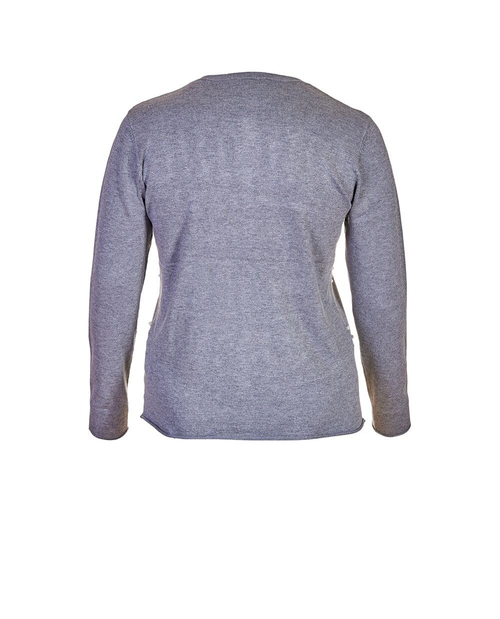 Жакет кольору акуляча шкіра з високоякісного трикотажу. Передня частина розшита перлами. Кругла горловина, застібка на ґудзики, прямий крій.