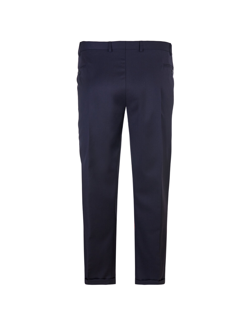 Штани чоловічі класичні з манжетами внизу, верхній зріз оброблений притачним поясом, зі складками на передніх половинках, на обох задніх і передніх половинках прорізні кишені в рамку.