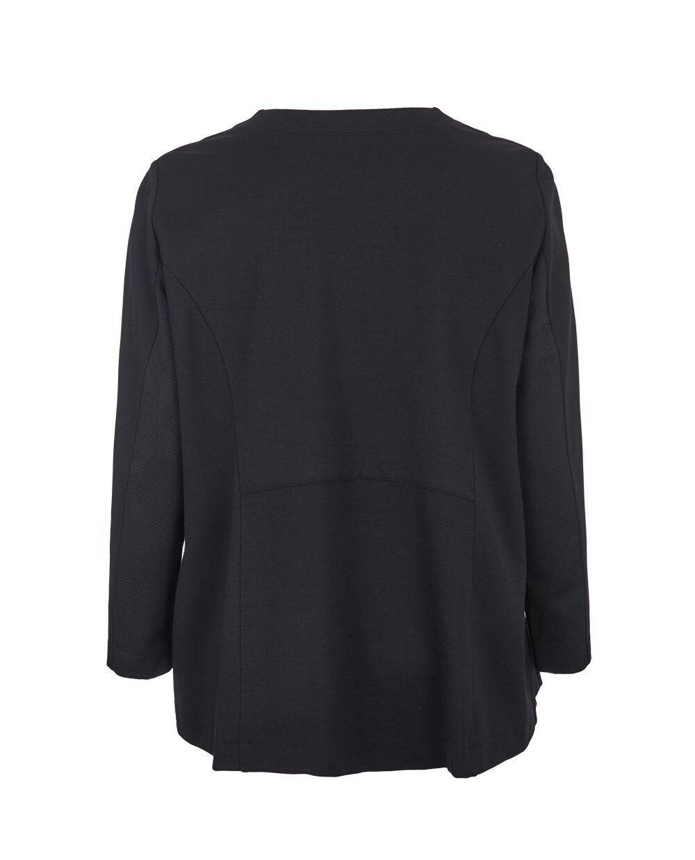 Накидка Chalou з джерсі без коміра. Прямий крій, довгий рукав зі вставками з рельєфного джерсі. Дві бічні кишені та імітація кишень, декоровані металевими блискавками. Довжина накидки в 50 р. - 86 см, довжина рукава - 43 см.