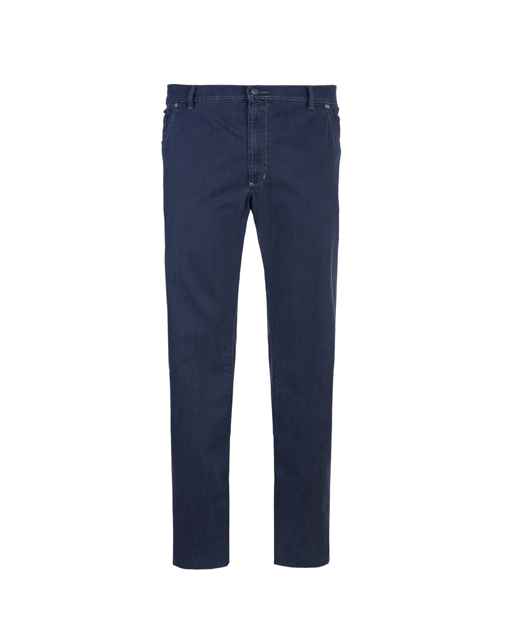 Класичні штани прямого силуету зі стрілками. Модель сірого кольору з легким меланжевим ефектом на поверхні. Штани з чотирма кишенями, передні бічні кишені - косі, задні кишені - прорізні з застібкою на ґудзики. Штани однаково ефектно поєднуються як з класичними діловими сорочками, так і з трикотажем.