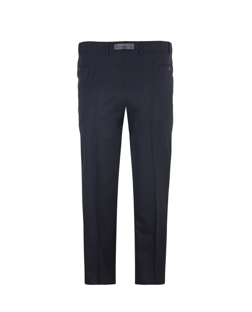 Штани чоловічі злегка завужені до низу, обробка верхнього зрізу притачним поясом, без защипів, бічні кишені, на задніх половинках прорізні кишені в рамку.