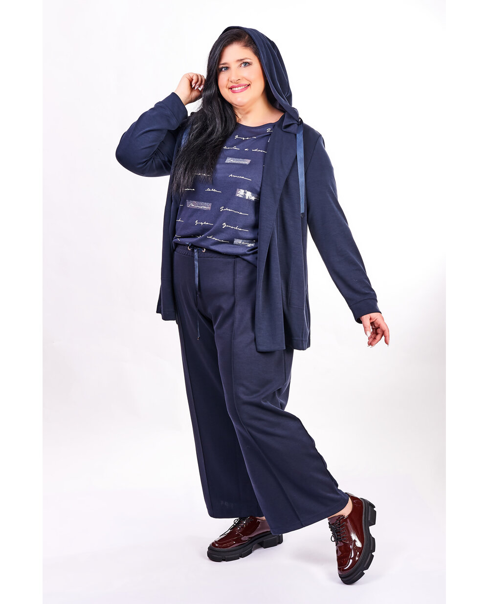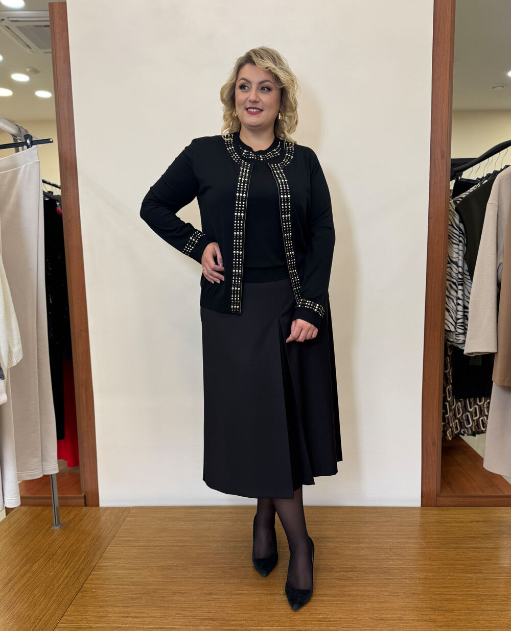 Фото нарядів, де жіночі жакети для повних жінок показані у глянці, доводять, що їх можна носити практично з будь-яким одягом. Для ділового стилю підбирайте до образу брюки прямого крою, сукню-футляр або спідницю А-силуету.