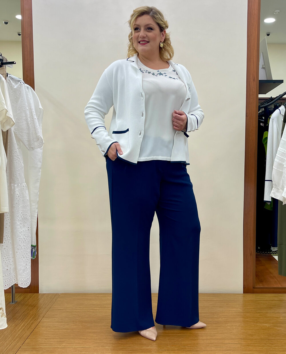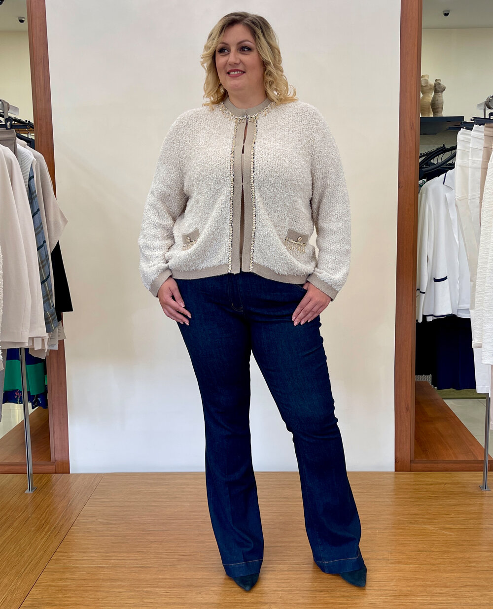 Переглядаючи фасони жакетів для повних жінок на фото, можна виділити кілька вдалих моделей: